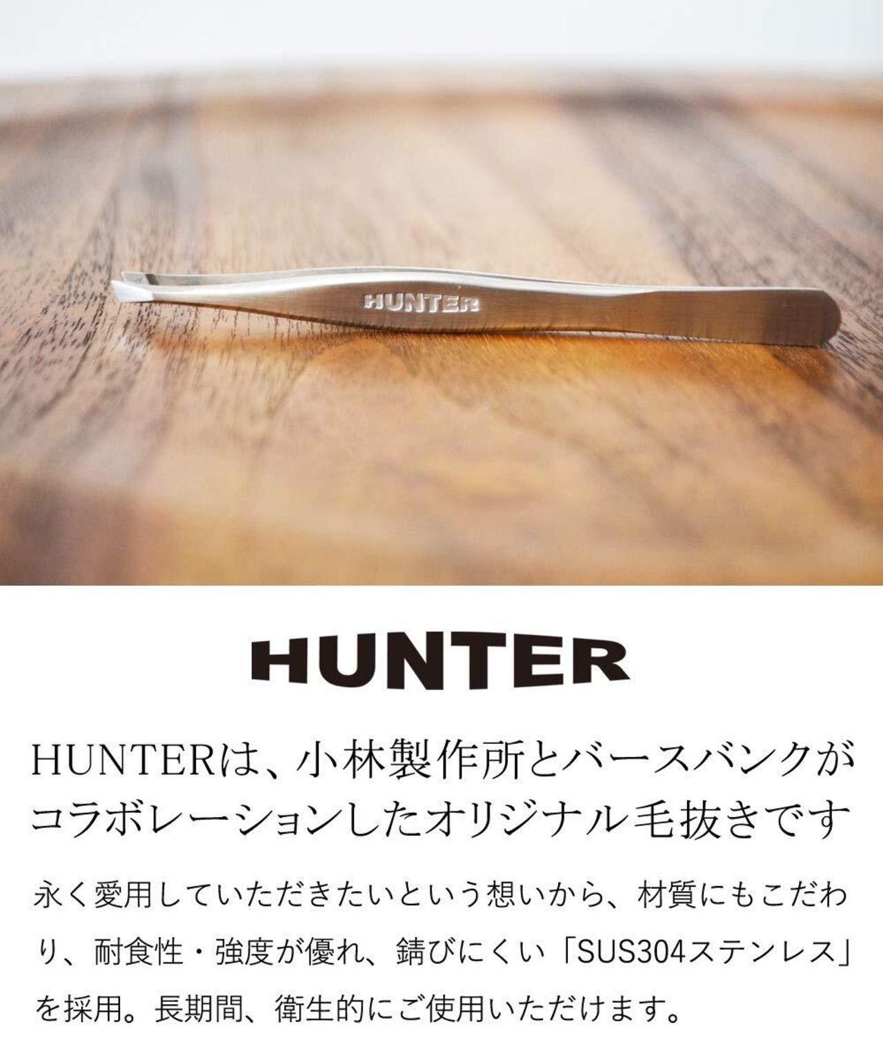 HUNTERは、小林製作所とバースバンクがコラボレーションしたオリジナル日本製毛抜きです。