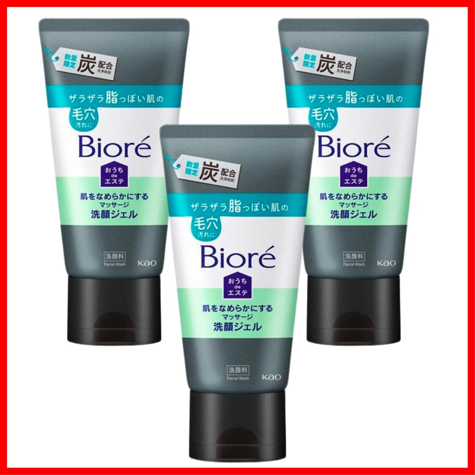 JUCAGO 【まとめ買い3本セット】花王 ビオレ おうちdeエステ 肌をなめらかにするマッサージ洗顔ジェル 炭 150g