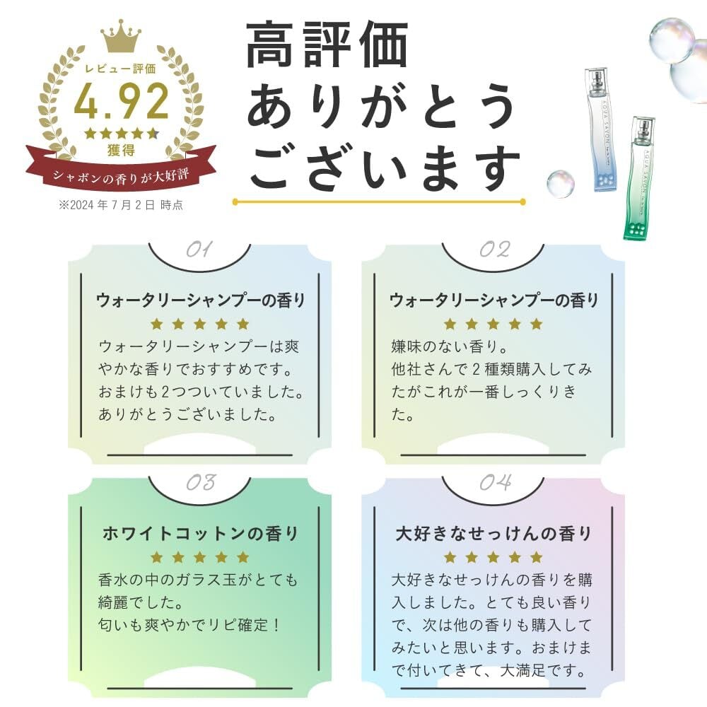 人気No.3の香り※ ふんわり甘くて懐かしい、せっけんの幸せな気分になる香り ※ アクア シャボン シリーズ内
