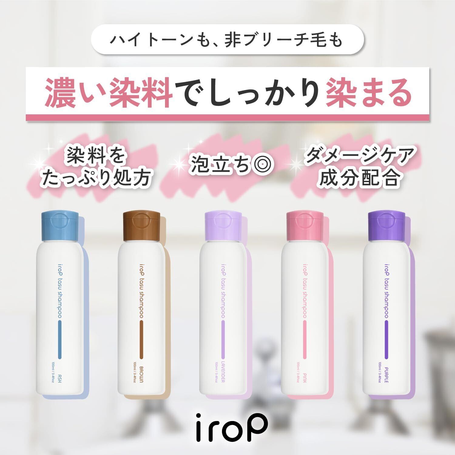 イロップ タス シャンプー (100mL / ピンク) カラーケア用シャンプー 泡立ち (アミノ酸 配合/ケラチン) ダメージ補修 ブリーチケア