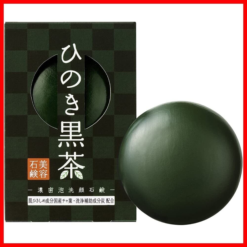 【新春セール】ひのき黒茶 濃密泡 洗顔石鹸 (80g / 泡立てネット付き) 洗顔 固形石鹸 洗顔せっけん (ペリカン石鹸/もっちり泡/毛穴洗浄) ひのき黒茶石鹸 茶葉 竹炭 保湿成分配合 | カウカウ物販