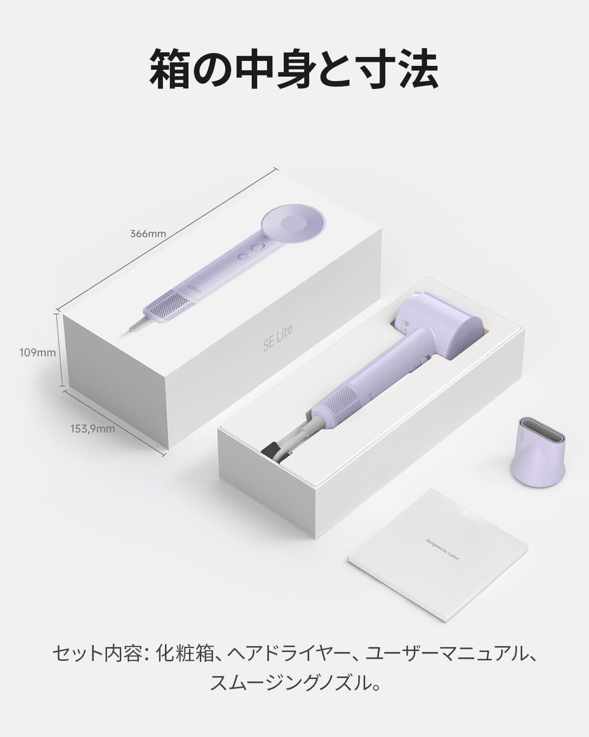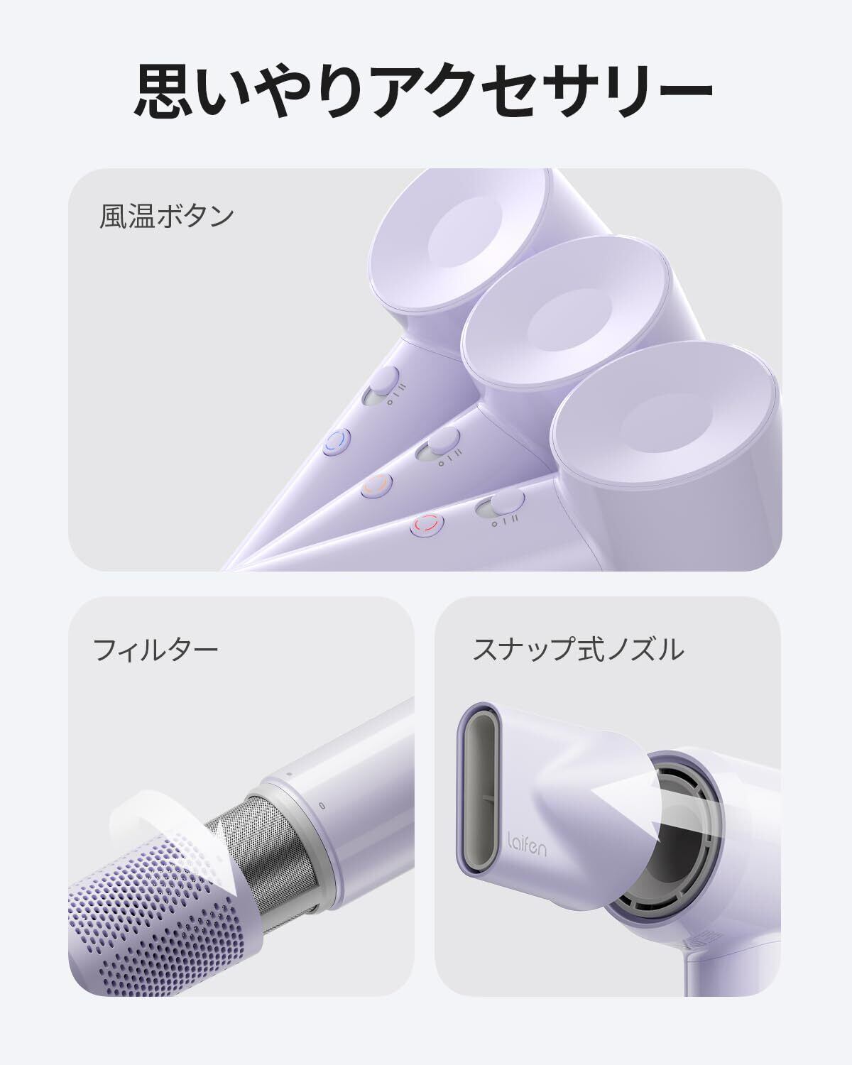 【新着商品】Laifen ライフェン SE Lite ヘアドライヤー 速乾 大風量高濃度1.5億マイナスイオン 8モード 過熱防止 軽量 コンパクト 持ち運び便利 マグネット式ノズル付き 10万RPM超高速回転 低騒音 静電気除去 温度制御機能付き 家庭用/旅行用 パープル | カウカウ物販