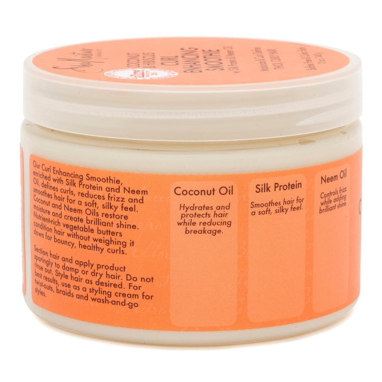 Nutrient rich vegetable butters condition hair, restoring moisture, body and shine. Enhances curls, minimizes frizz and provides curl control. For thick, curly hair. Sulfate-free and color-safe.Coconut oil: Hydrates and protects hair from heat and chemical damage Silk protein: Reduces breakage, strengthens hair, adds smoothness and silkiness Neem oil: An age-old ayurvedic oil that strengthens hair and provides brilliant shine No parabens, phthalates, paraffin, gluten, propylene glycol, mineral oil, synthetic fragrance, animal testing, PABA, synthetic color, DEA, or animal ingredients.