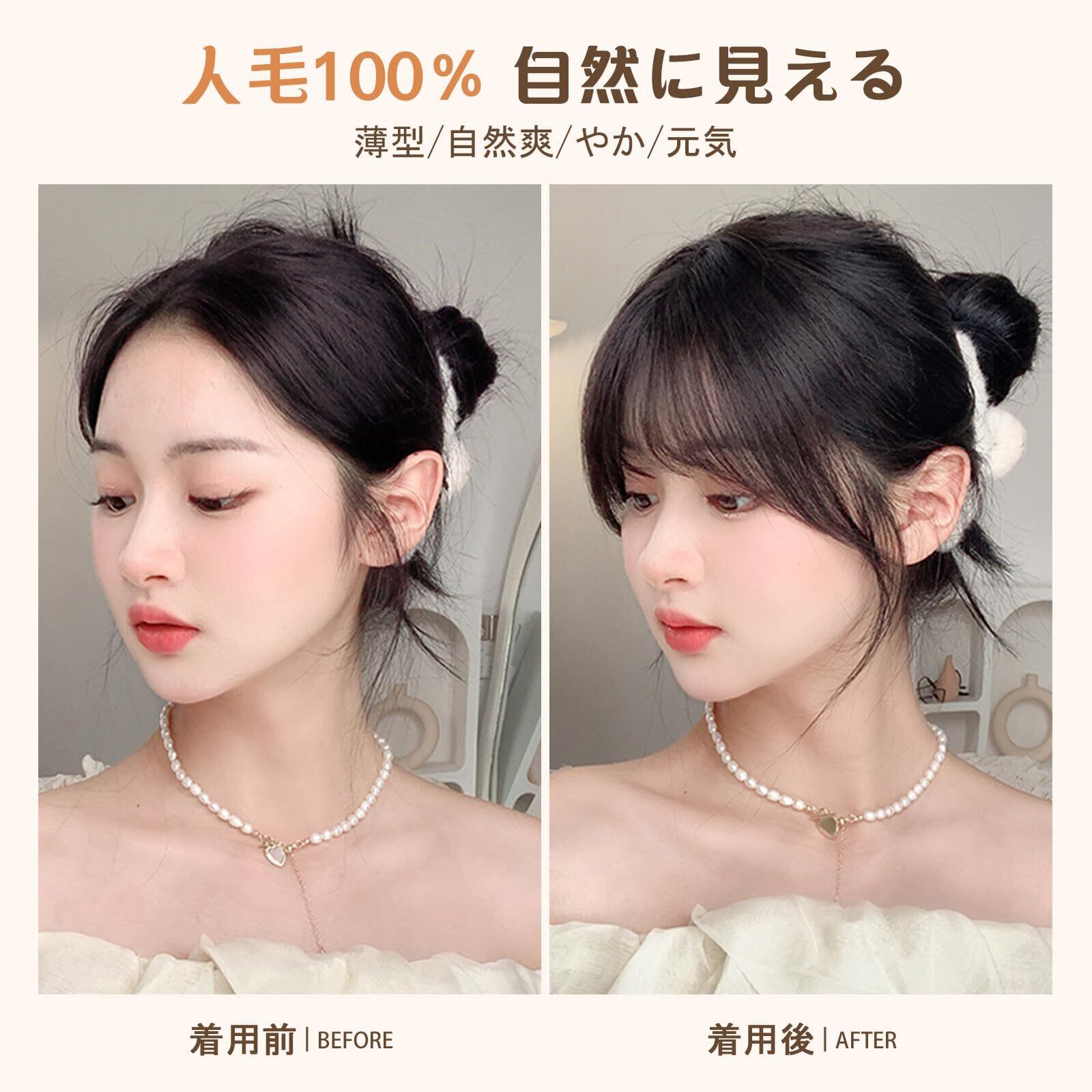 【在庫処分】Hanzhuo 前髪ウィッグ 部分ウィッグ 前髪 人毛 ぱっつん レディース 自然 つけ前髪 耐熱 バレない 薄型 長め ふわふわ 総手植え クリップ 着用簡単 普段使い向け エクステ | カウカウ物販