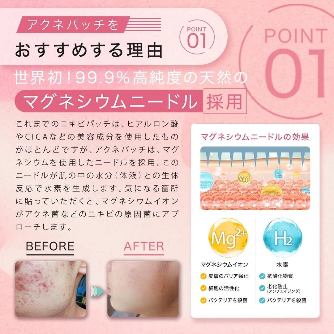 MIKAI PREMIUM SAKURA PATCHは、99.9%高純度のマグネシウム針を使用したスキンケアパッチです。肌の水分と反応してイオン化し、水素バブルが発生して肌荒れにアプローチします。針の硬さと形が安定しているため、しっかりと肌に刺さります。シカパッチ、ティーツリーパッチ、ヒアルロン酸パッチが合わなかった方にもおすすめです。サイズはSサイズ(直径12mm)とMサイズ(直径18mm)があり、鼻、顎、首、背中、広範囲に使用できます。敏感肌や脂性肌にも優しい設計で、日本製の高品質パッチです。星形のかわいいデザインで、おしゃれな夜用スキンケアアイテムとしても最適です。剥がれにくく、大容量パックでコスパも抜群です。思春期のお子様から大人のメンズまで、幅広い年齢層にご使用いただけます。