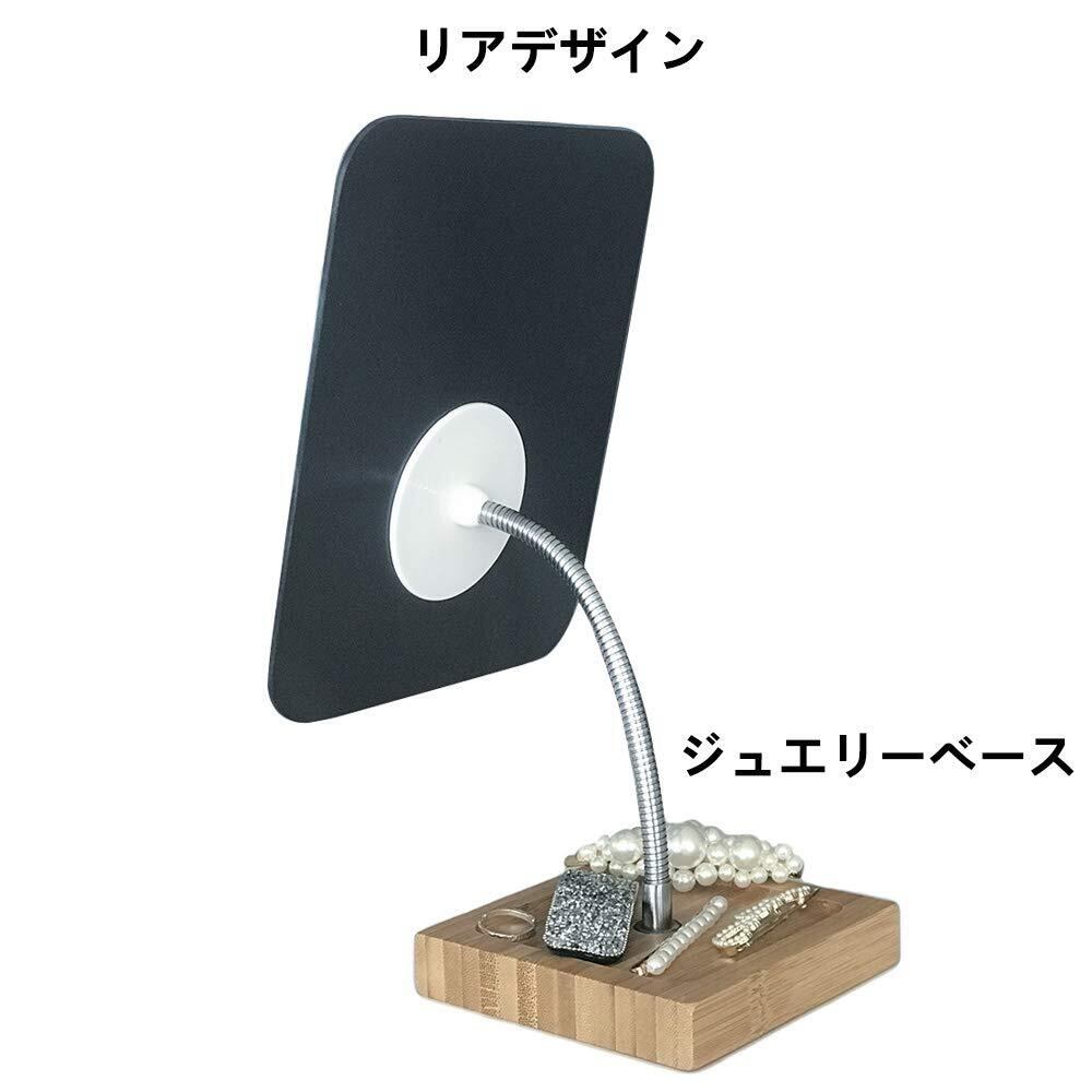 YEAKE 鏡 卓上 卓上ミラー 卓上鏡 かがみ 手鏡 スタンドミラー 360度柔軟に回転するガチョウの首の化粧鏡の卓上鏡 大きめ、竹の制の台座の携帯することができる折り畳みの鏡の手鏡 長方形