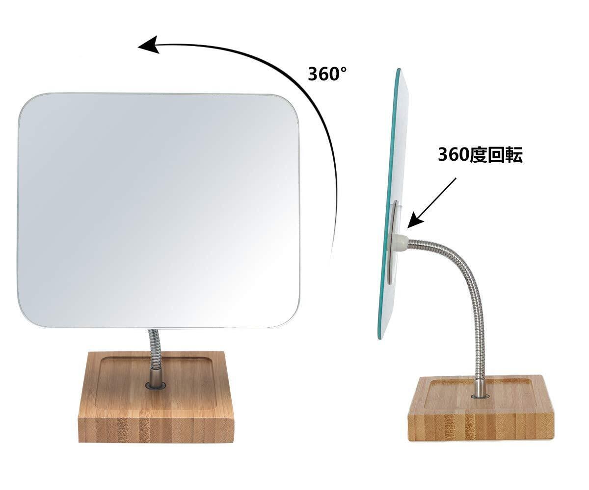 【新春セール】YEAKE 鏡 卓上 卓上ミラー 卓上鏡 かがみ 手鏡 スタンドミラー 360度柔軟に回転するガチョウの首の化粧鏡の卓上鏡 大きめ、竹の制の台座の携帯することができる折り畳みの鏡の手鏡 長方形 | カウカウ物販