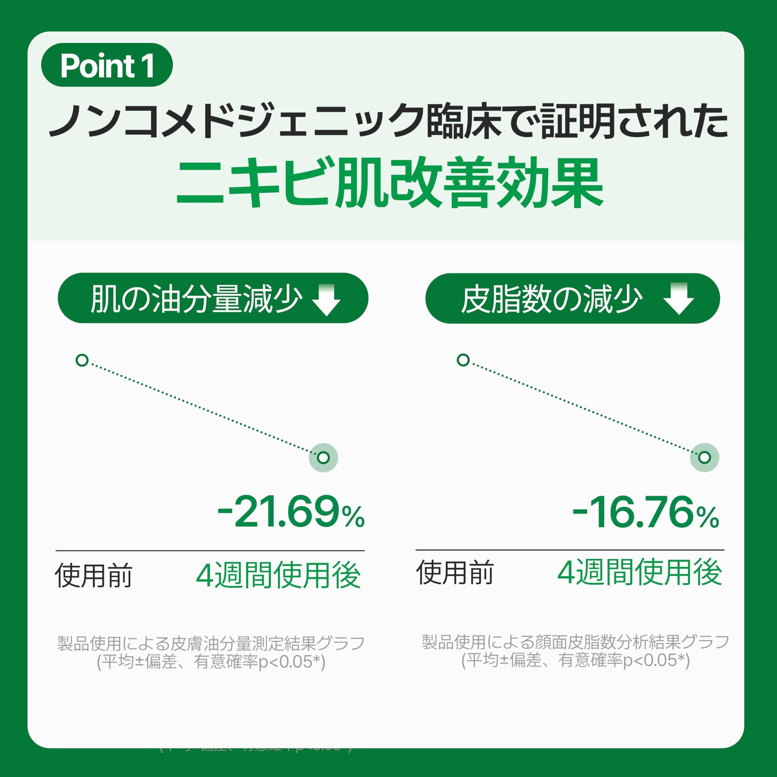 全ての肌タイプにおすすめ:あらゆる肌タイプに合うように作られており、敏感肌でも安心して使用できることが臨床試験で確認済みです。