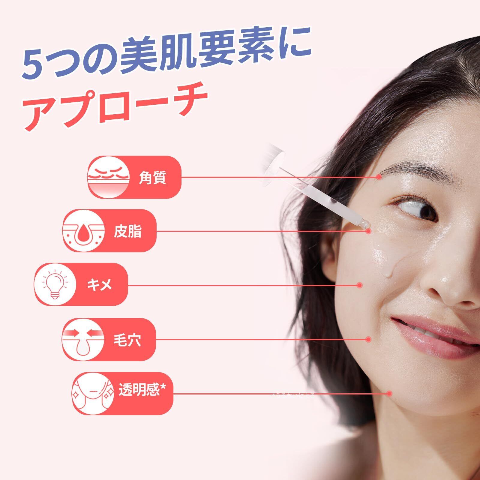 【5つの美肌要素にアプローチ】肌トラブル*悩みの主要要素である角質、皮脂、キメ、毛穴*¹、透明感*²を総合的にケア。*肌荒れ、キメの乱れ、ごわつきなど*¹乾燥により目立った毛穴*²うるおいによる