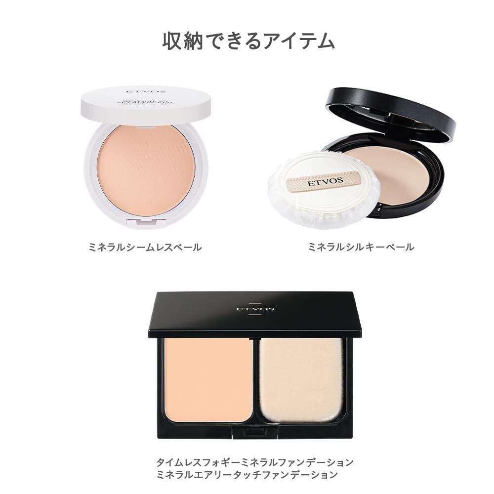 収納できるアイテム ◉ミネラルシームレスベール ◉ミネラルシルキーベール ◉タイムレスフォギーミネラルファンデーション ◉ミネラルエアリータッチファンデーション