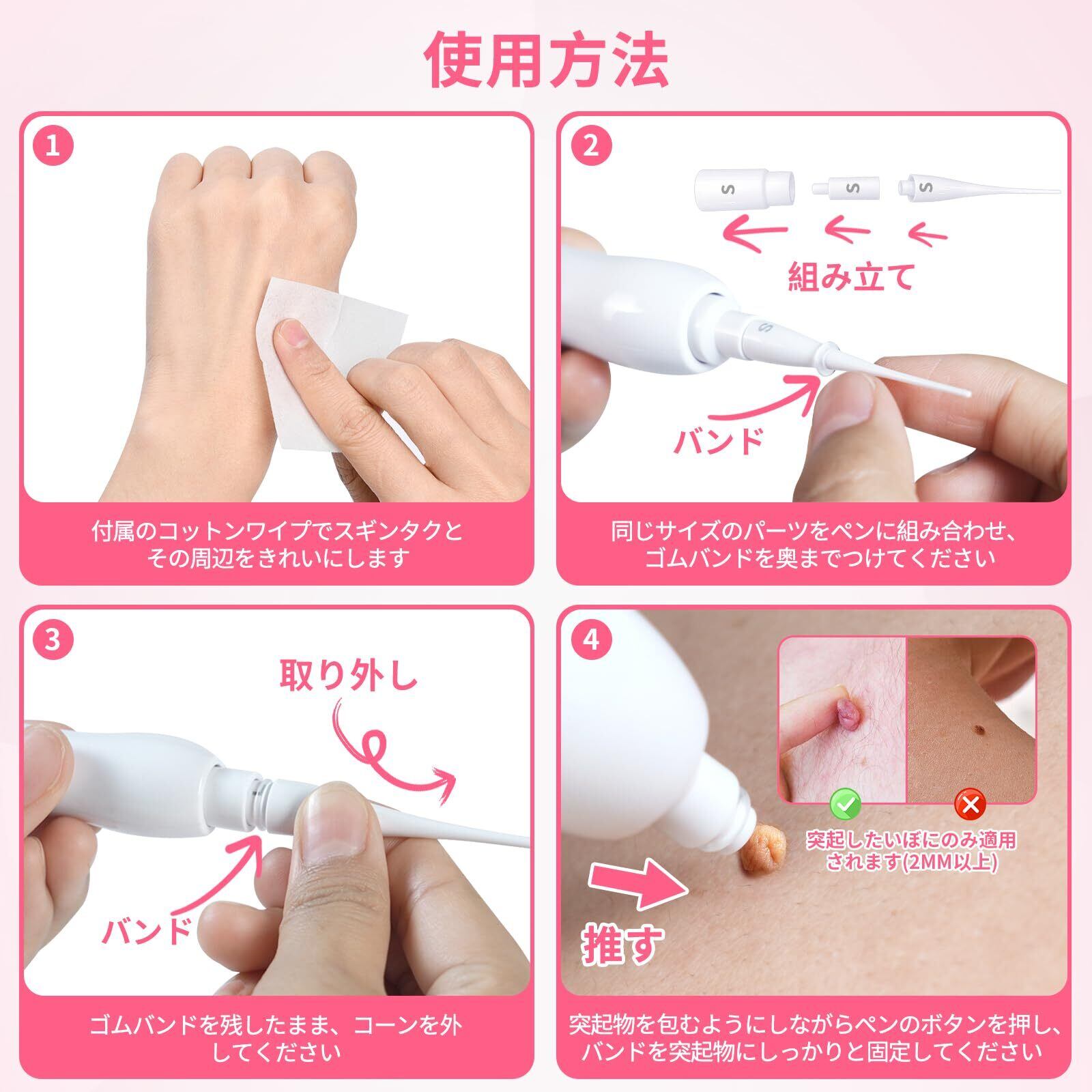 【特価商品】FERNIDA イボ取り スキンタグリムーバーキット 自宅処理 簡単使用 顔 首 1週間解決 3サイズ 88枚輪ゴム エコー素材採用 直径2-9mm対応 全身 イボがころり落ちる 日本語取扱付き | カウカウ物販