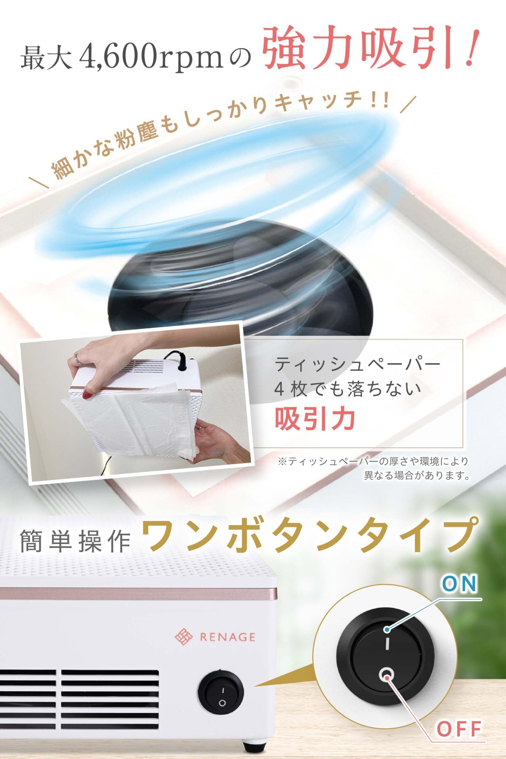 【数量限定】ネイル 集塵機 ネイルダスト クリーナー 人気YouTuber監修 RENAGE ネイルオフ 卓上集塵機 ネイルマシン ジェルネイル セルフネイル 4600rpm フィルター付き (ホワイト) | カウカウ物販