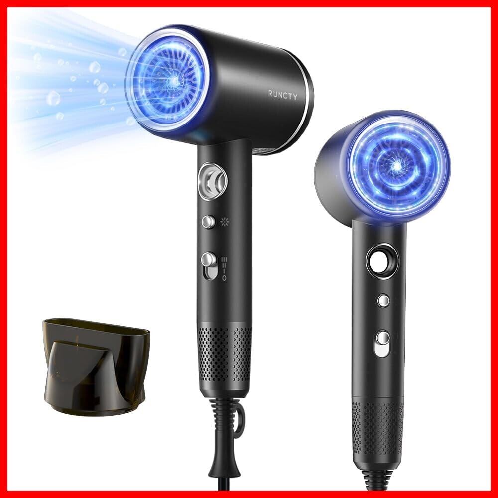 ヘアドライヤー 大風量 【速乾・美髪&静電気抑制】 ドライヤー 3億高濃度マイナスイオン ナノケア 高速ドライヤー 57℃恒温ヘアケア 3段階風速調節 温冷風切替 低騒音 速乾ドライヤー 髪ヘアケア 過熱防止機能 髪質改善 静音 ノズル付き 軽量 家庭用/サロン用/出張・旅行用 持ち運び便利日本語取扱説明書付き PSE認証済み (黒)