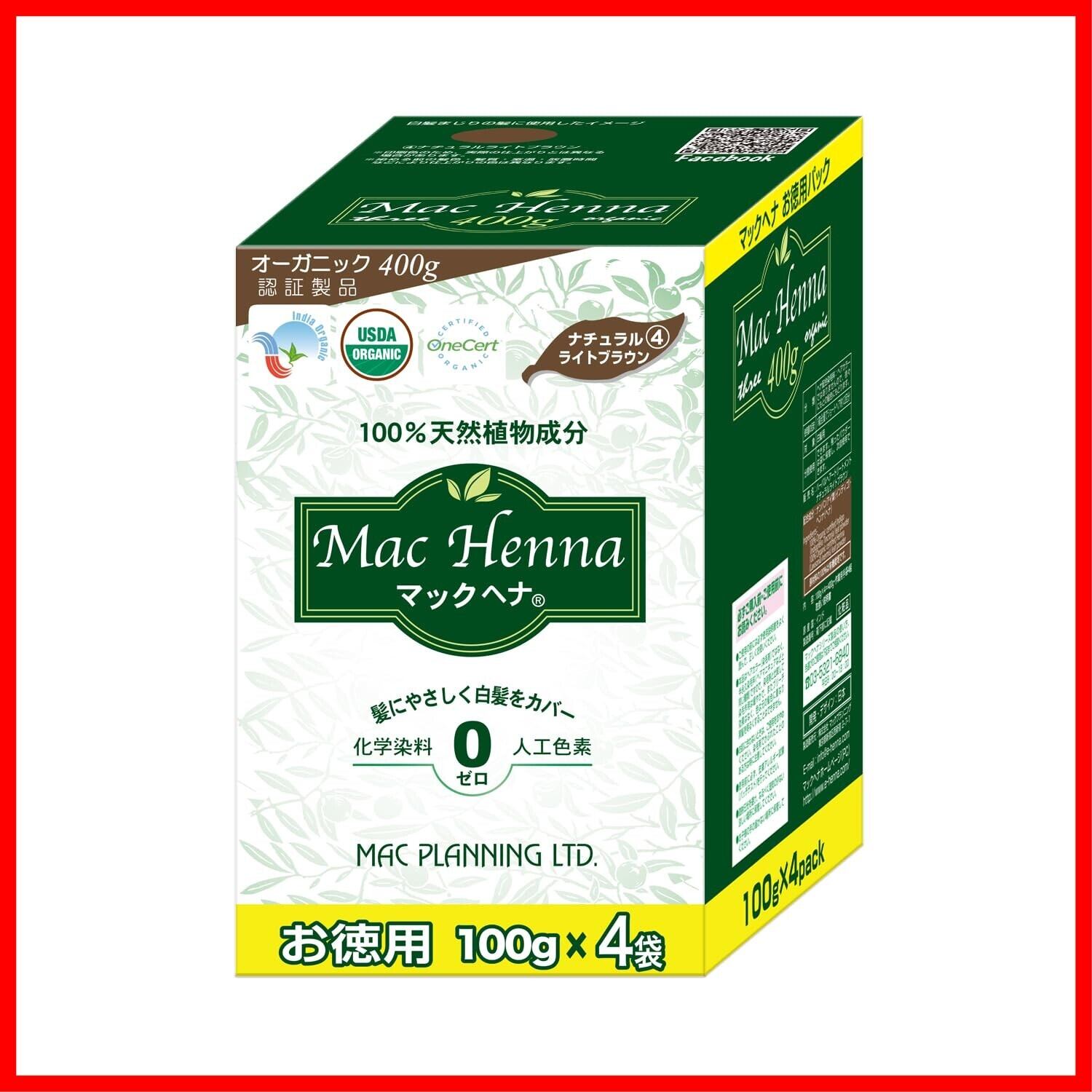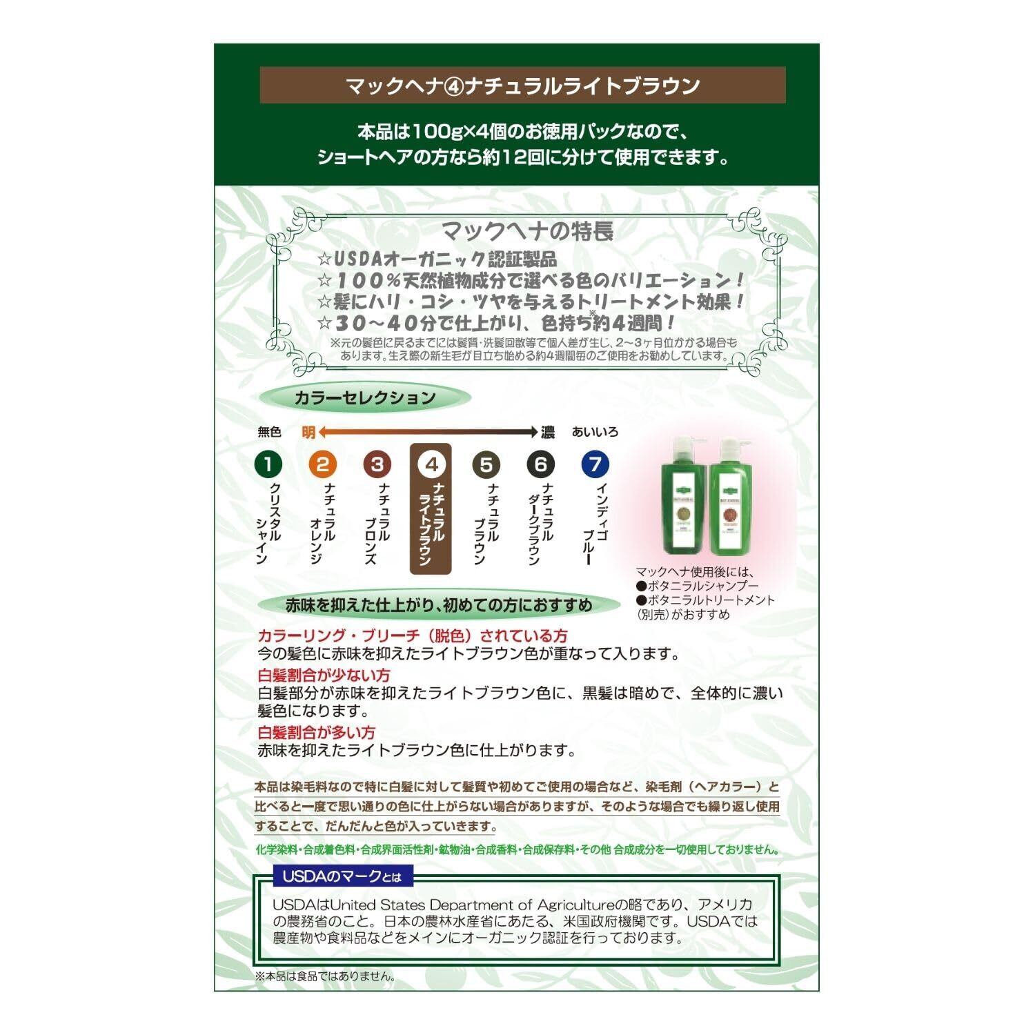 マックプランニング 天然植物原料100% 無添加 マックヘナ お徳用(ナチュラルライトブラウン)-4 400g(100g×4袋)