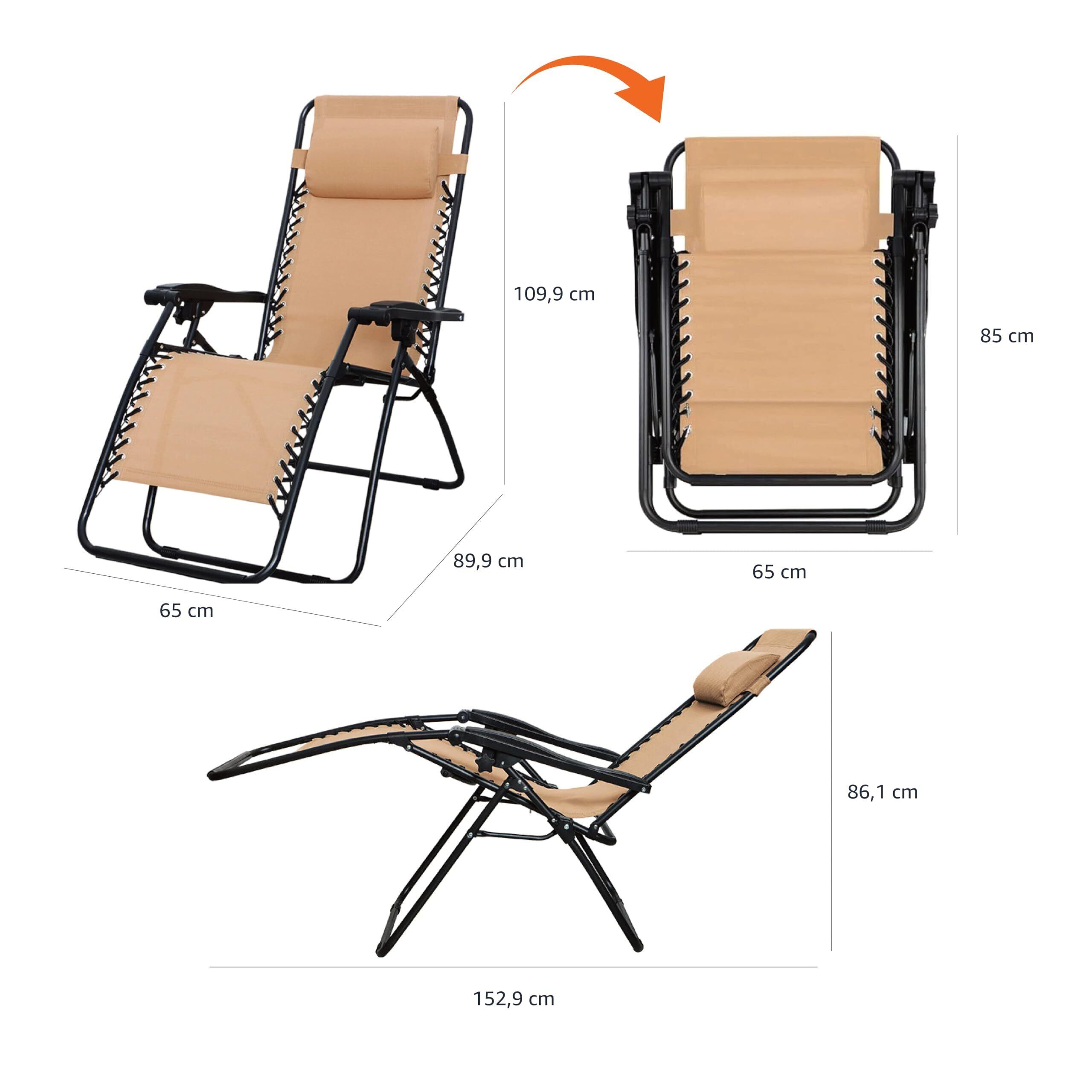 ベーシック 椅子 キャンプ アウトドアチェア 折りたたみ ゼログラビティーチェア 幅66cm x 奥行104-165cm x 高さ76-110cm ベージュ