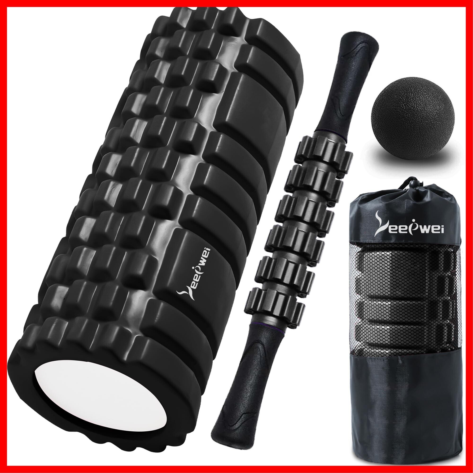LEEPWEI フォームローラー 筋膜リリース ヨガポール トリガーポイント マッサージボール 初心者 家庭用 4点セット 収納袋付き ブラック