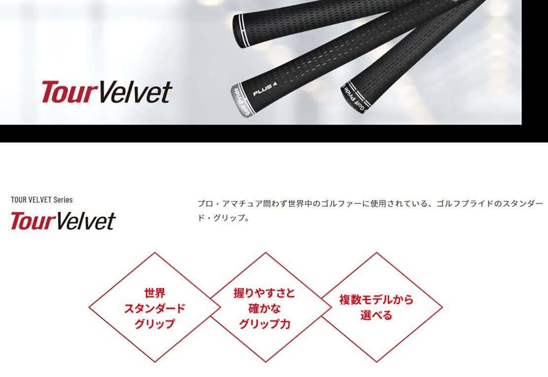 2012年世界4大メジャートーナメント使用率第1位。 高級で最新鋭のブレンドラバーとコンピュータでデザインされた滑りにくい表面パターンを組み合わせプレー性能、快適性、信頼性を最大限に実現。ツアーベルベット・ラバーは、多くのクラブメーカーがデザインの基礎を作る基準となっている。標準重量52g(M60X)