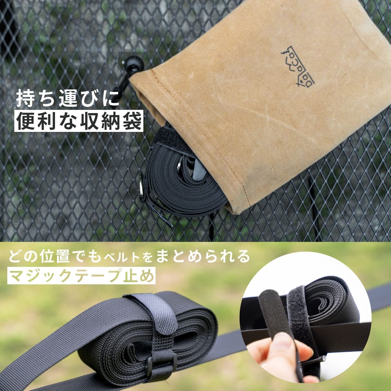 DaLaCa 小川張り タープ延長ベルト セッティングテープ ワンタッチ長さ調整5.2m 耐荷重200kg 張り方説明書 収納袋 まとめるバンド付き