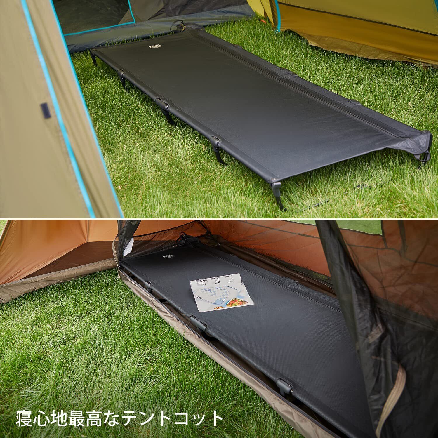 【特価セール】TIMBER RIDGE キャンプベッド 折りたたみ 特許取得一体式 組み立て不要 数秒セットアップ 耐荷重102kg アルミ+スチール製 L190.5*W66*H15.5cm キャンプコット きしみ音ない コンパクト 持ち運び簡単 沈み感ない 安定感 ブラック | カウカウ物販