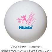 伊藤選手のプレーシルエットとサインをプリントした、プラスチックボール2個付きです。