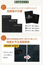 【さらに多くのサイズ選択肢】不燃シートは縫い目が密着しており、56×60cm、60×95cm、95×100cmの3種類のサイズがあります。焚き火シート、耐热シート、防火シート、薪シートなどのベースシートとして使用でき、ユーザーは必要に応じてサイズを選択できます。また、折りたたみ可能で携帯に便利で、収納袋が付属しています。