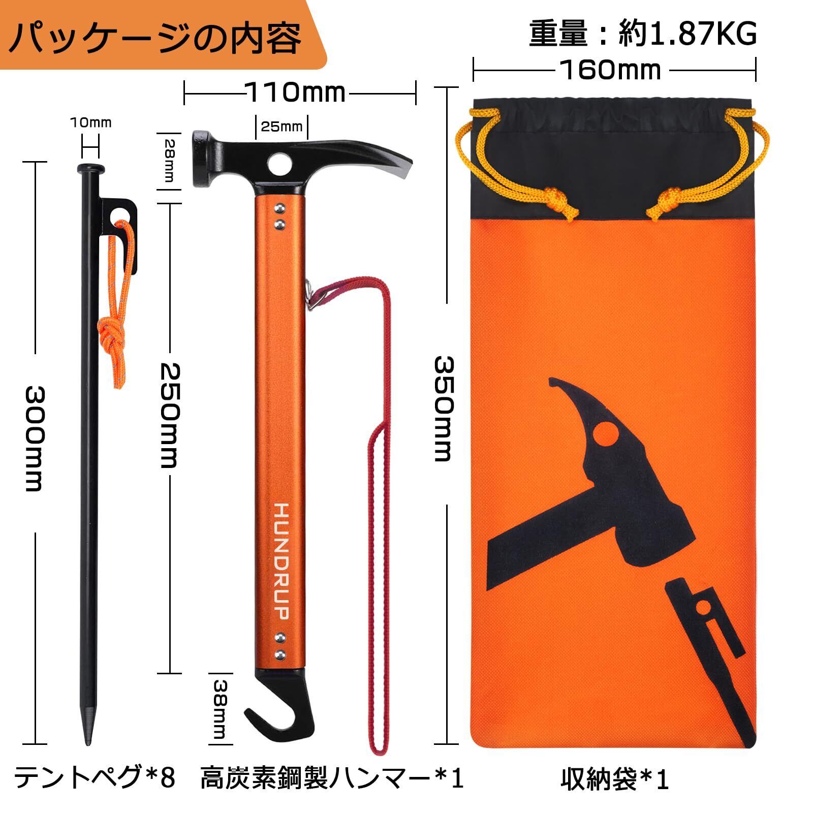 【梱包内容・12ヶ月間安心】 : 梱包内容:ハンマー本体 * 1本、テントペグ30mm * 8本、600Dオックスフォード収納袋 * 1点。ご購入日より12ヶ月間安心がございます、万が一何ペグ打ち曲がり場合、錆びありと変な音ありの場合などがございましたら、ご遠慮なくご連絡くださいませ。至急新品交換・返金などのサービスを対応させていただきます。