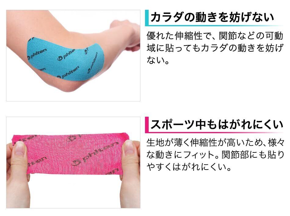 伸縮性に優れ、ひざやひじなどの関節部分にも貼りやすくはがれにくい。