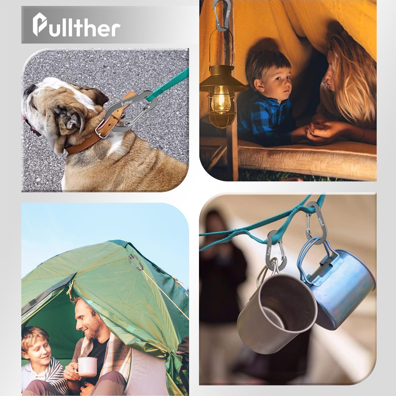 Pullther カラビナ 小型 5cm 超軽量 錆びない アルミ合金 アウトドア ガイロープ カラビナ 釣り 20個