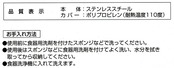 <b>材質:</b> 本体/ステンレススチール、カバー/ポリプロピレン(耐熱温度 110度)