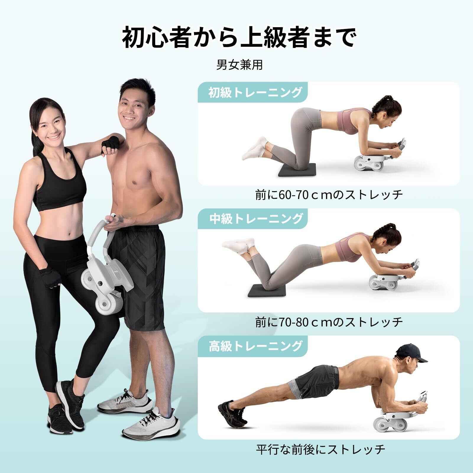 【10㎝幅広い二輪デザイン、高い安定性】 腹筋 トレーニング器具は幅10㎝*2の二輪仕様で、トレーニング中の安定性に優れており、身体バランスを高めることに役立ちます。また、膝を保護するマットと滑り止めハンドルは、安全性と快適性を高めるほか、トレーニングにより集中し、トレーニング効果にも繋がります。