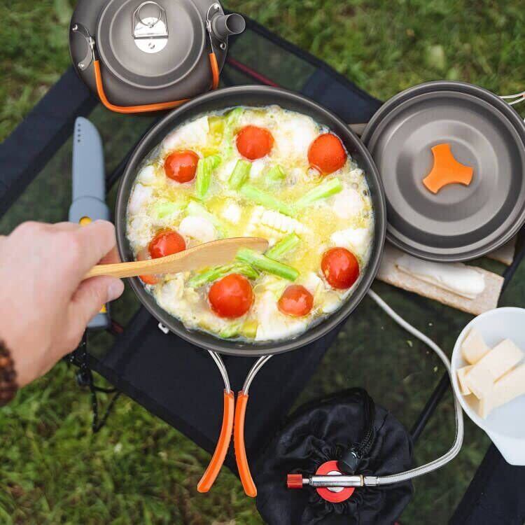 Overmont DS-300 アルミ クッカーセット アウトドア鍋 アウトドアケトル キャンピング 調理器具 収納袋付き 2–3人に適応