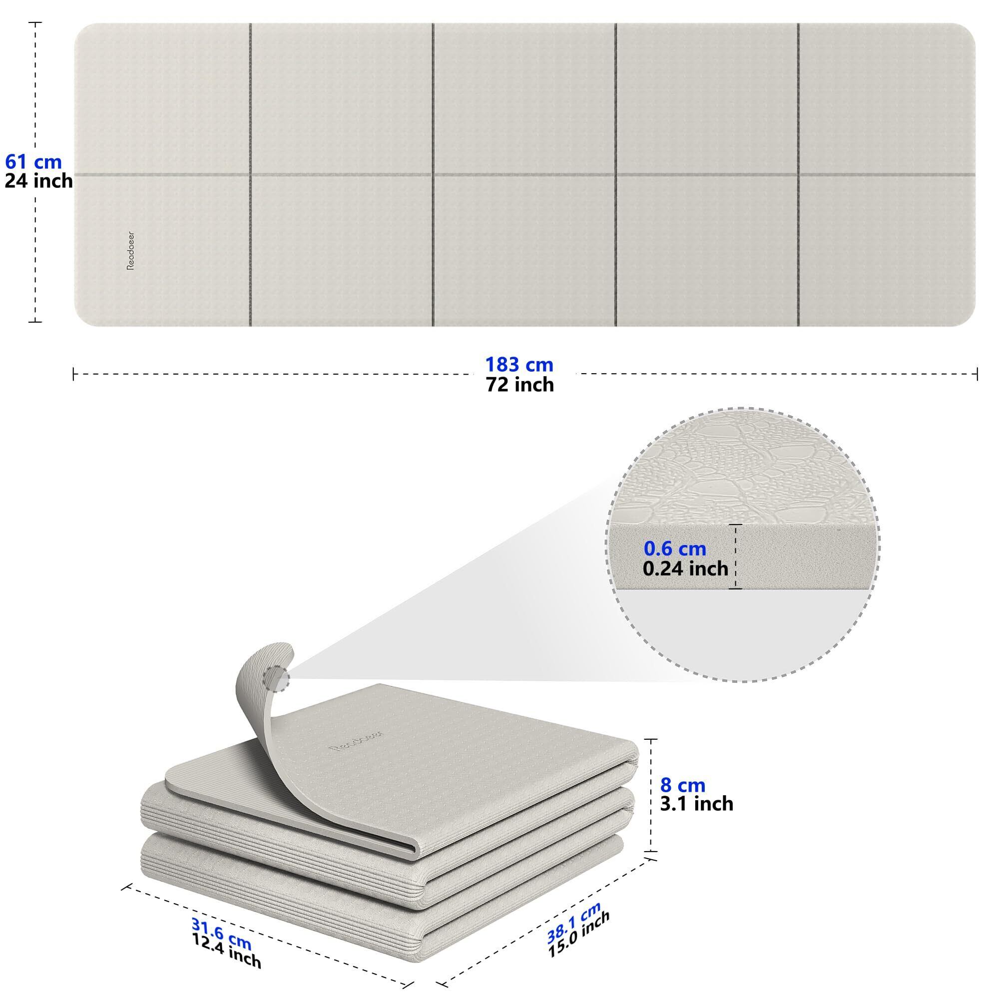 Readaeer ヨガマット トレーニングマット 折り畳み式 183cm×61cm 厚め 6mm TPE素材 無臭 防音 収納バッグ付き 軽量 持ち運び・収納便利 ストレッチマット エクササイズマット フィットネスマット ピラティスマット