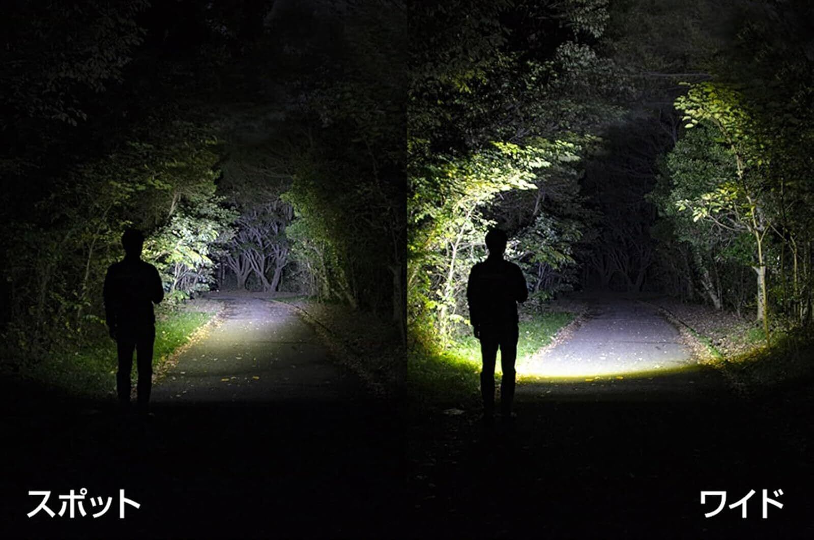 明るさ:Max/900ルーメン・High/400ルーメン・Mid/180ルーメン・Eco/50ルーメン、使用電池:専用充電池