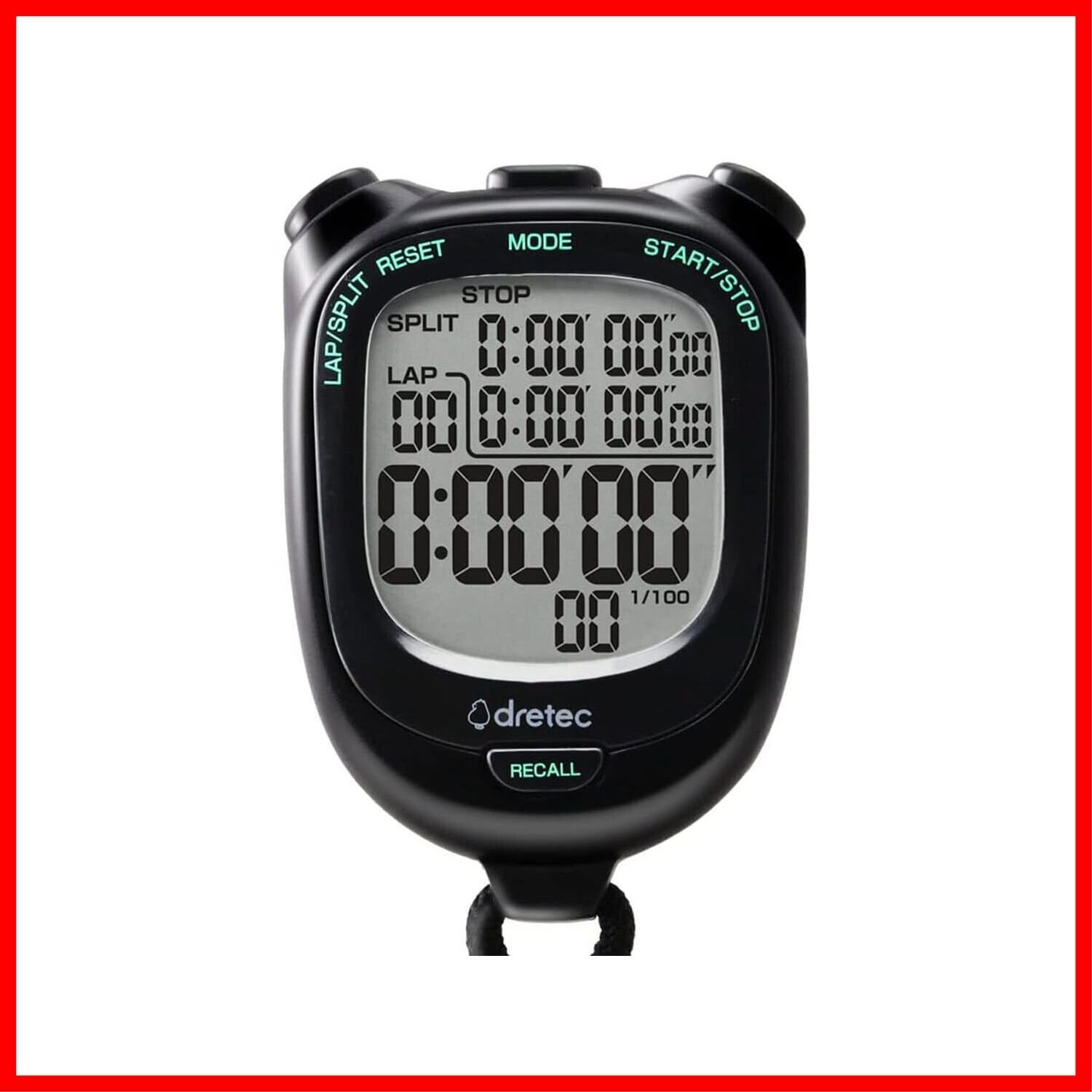 ドリテック(dretec) 大画面で見やすいストップウォッチ 0.01秒単位で計測 ラップ/スプリット機能 電池交換可 消音 勉強 ブラック約W58×D21×H81mm