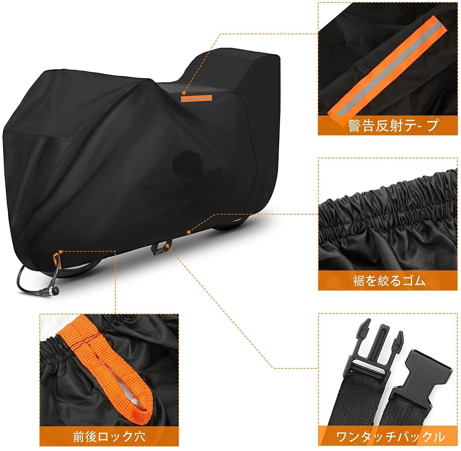 ●生地には防水加工、縫製糸には撥水加工を施してありますが、カバーを車体に付ける時、凹みがあるなら、雨水を長時間に凹みに貯まると、車体が濡れる場合がありますため、凹みがないようにカバーを車体につけてください。 `