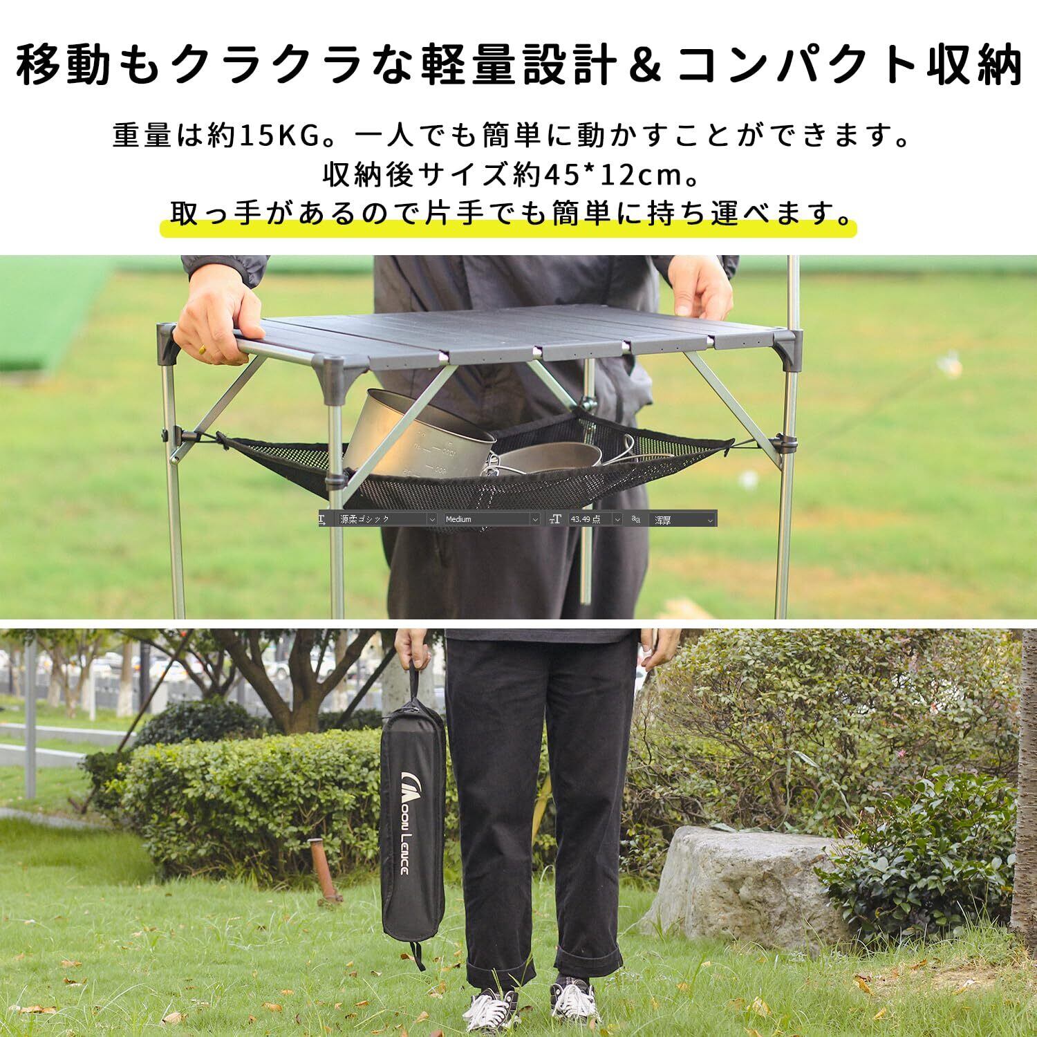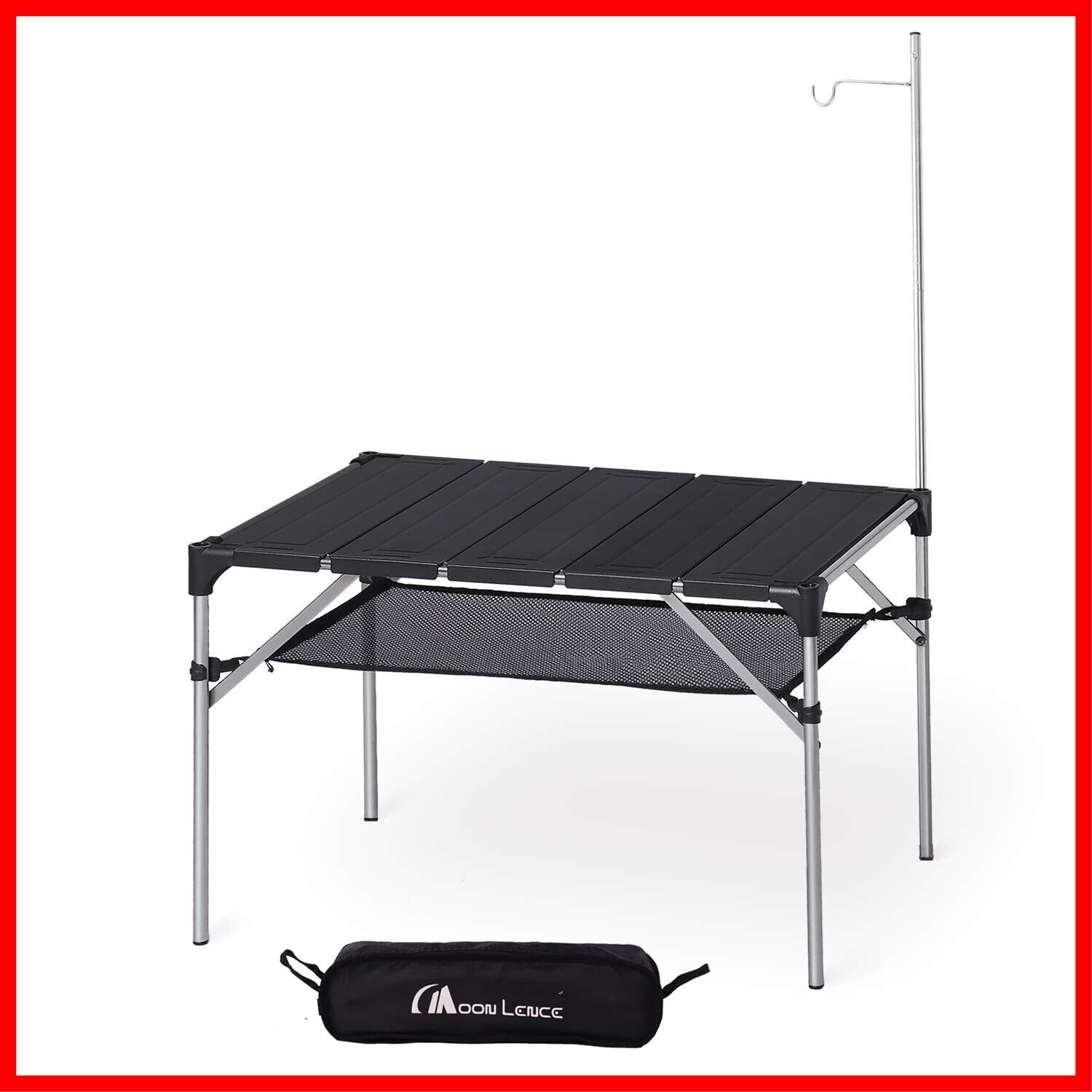 Moon Lence キャンプ テーブル アルミ アウトドア ロールテーブル ランタンハンガー付き アウトドア ハイキング BBQ 折りたたみ式 コンパクト 超軽量