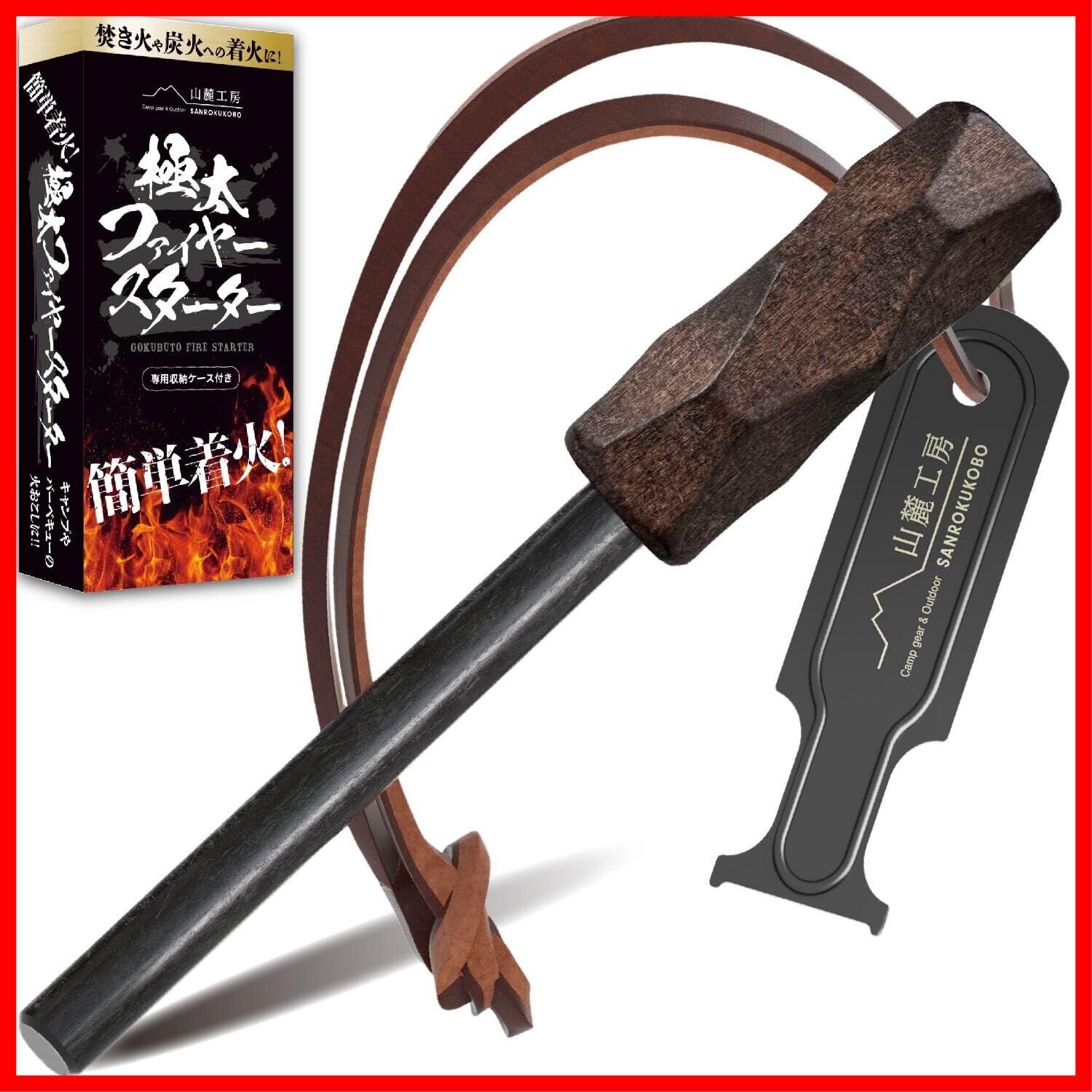 山麓工房 極太 ファイヤースターター 簡単着火 無期限メーカー 大きい フェロセリウム 収納ケース付き 火打ち石 キャンプ BBQ 火起こし 着火 (ダークブラウン)
