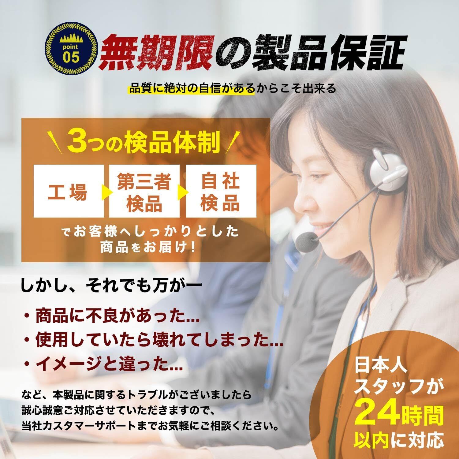 【無期限メーカー】お客様へしっかりとした商品をお届けするため、工場→第三者検品→自社検品と3つの検品体制を整えております。しかし、それでも万が一本製品に関するトラブルがございましたら誠心誠意ご対応させていただきますので、山麓工房までお気軽にご相談ください。 日本人スタッフが24時間以内にご対応させていただきます。
