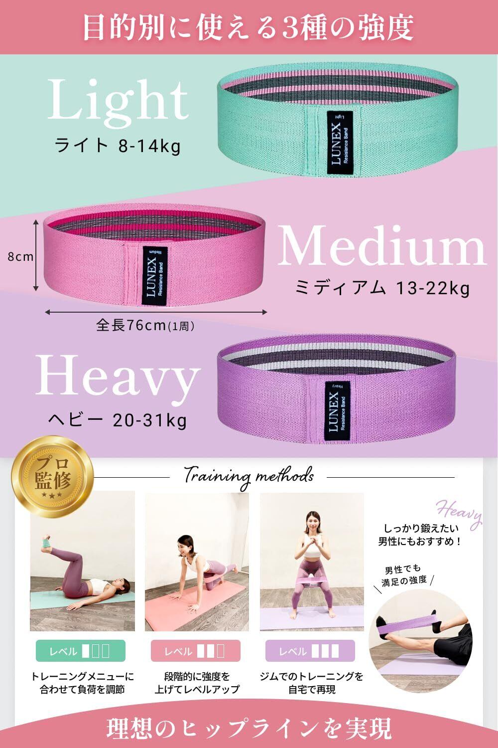 【3種類の強度】レベルに合わせて使い分けられるよう、幅広い強度にしました。筋力低下を実感している方、自分で体幹トレーニングしたい方、ジムで教わった内容を自宅で再現したい方におすすめです。
