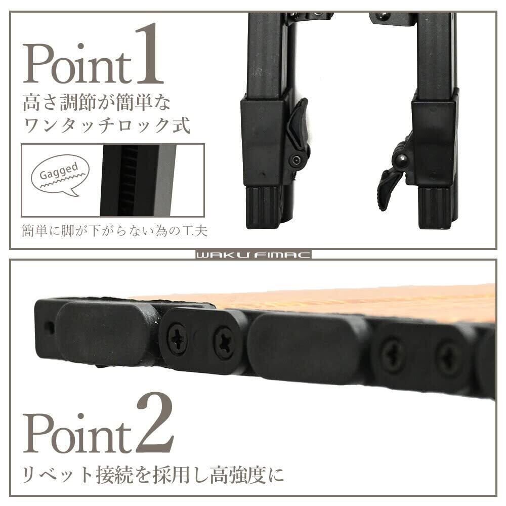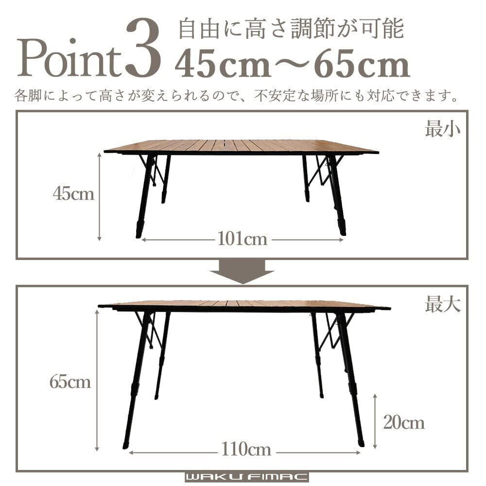 waku fimac 120×70 アウトドアテーブル キャンプテーブル ウッド 調 高さ調整 テーブル ロールテーブル キャンプ アウトドア 軽量 木目 ブラウンウッド