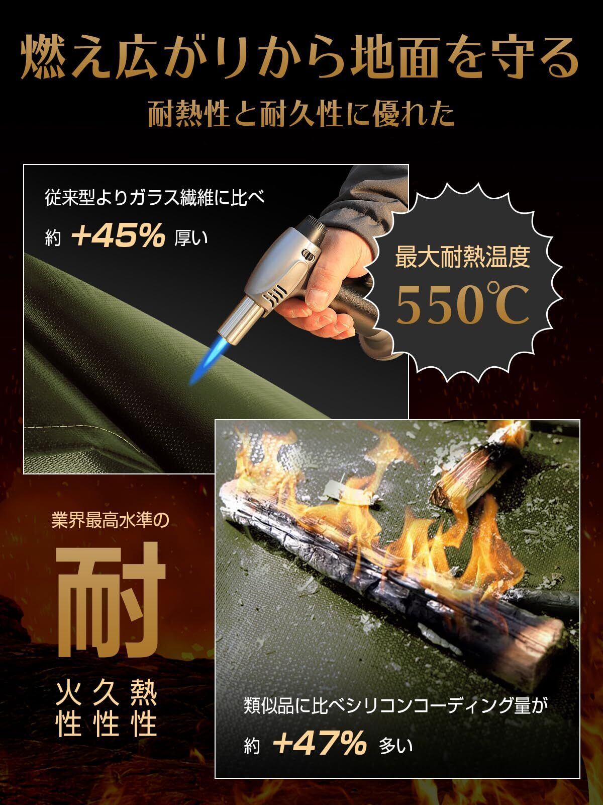 【アップグレード版&耐火性45%UP】 焚き火シートは高品質のガラス繊維と両面A級シリコンコーディングで作られており、チクチクせずにお手入れが簡単です。 市販の通常の焚き火台シートと比較して、当社のガラス繊維は同様の製品より約 45% 厚く、約 +47% 多くのシリコンコーティングが施されており、高い難燃性と空気密度を備えています。耐熱温度は550℃で、瞬間使用温度は最高1300℃まで達します。 焚き火シートを使用すると、延焼を防ぎ、火の粉から地面を守ります。