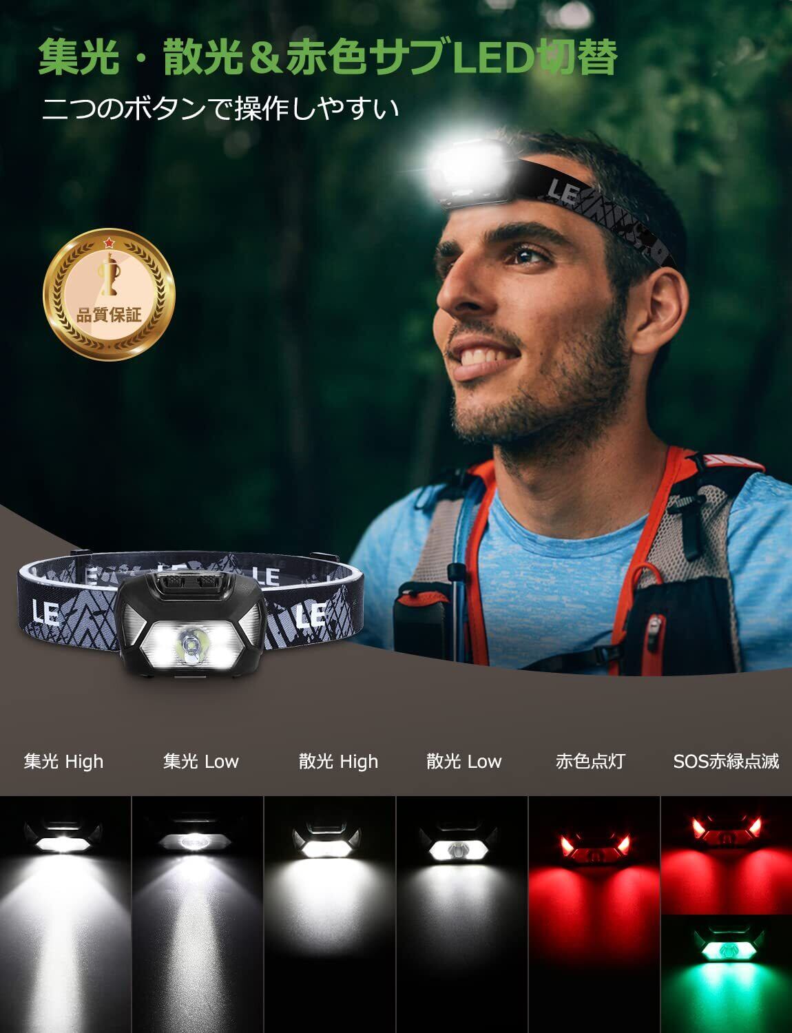 ヘッドライト 充電式 USB-C ledヘッドライト 高輝度 LED ヘッドランプ 2個セット 【集光・散光切替/ 明るさ300ルーメン/ 実用点灯4~30時間/ IPX4防水/Type-cケーブル付き】 赤色サブライト搭載 夜釣り 最適 登山 キャンプ 散歩 作業 釣り アウトドア 災害 停電用 小型 軽量 ヘッド ライト