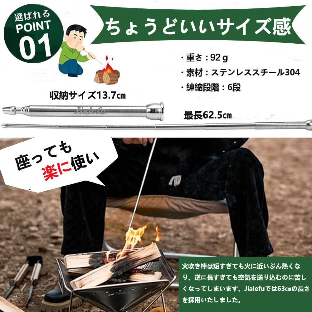 Jialefu ふいご 火吹き棒 火起こし 焚き火 送風機 バーベキュー 暖炉 炭 薪 ステンレス 耐久性 伸縮性 コンパクト携 帯 ポケット 6段構成 アウトドア キャンプ用 収納ボックス 付