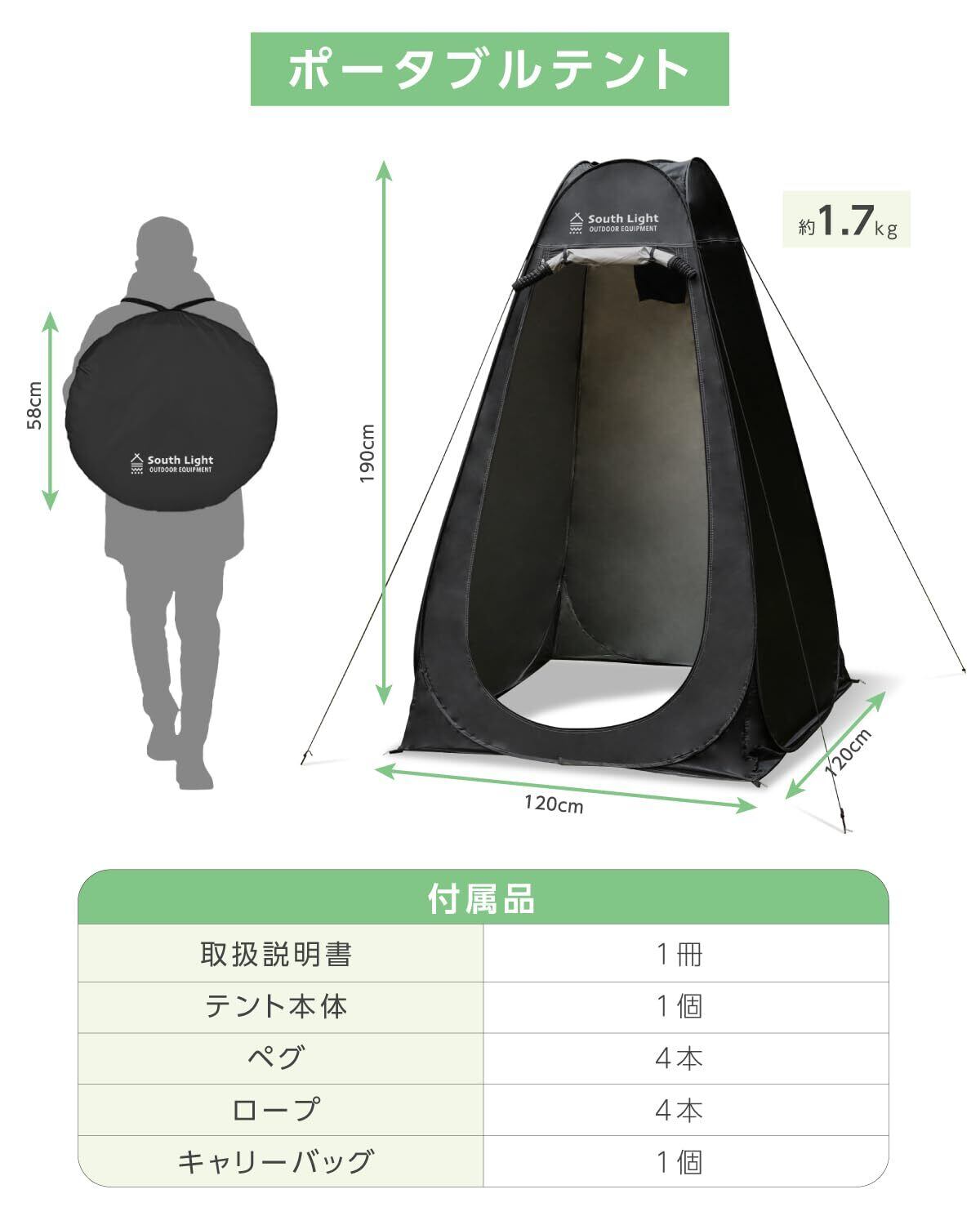 【幅広い用途&製品仕様】本製品は更衣室としてだけでなく、简易トイレやビーチテントのシャワー室としても幅広く活用できます。 型番:sl-lyzp01 色:ブラウン 材質:ポリエステル(シート、ロープ)、スチール(フレーム、ペグ) サイズ:組立時 約W120×D120×H190㎝ 同梱品:テント本体×1、ペグ×4、ロープ×4、収納バッグ(ポリエステル製)×1