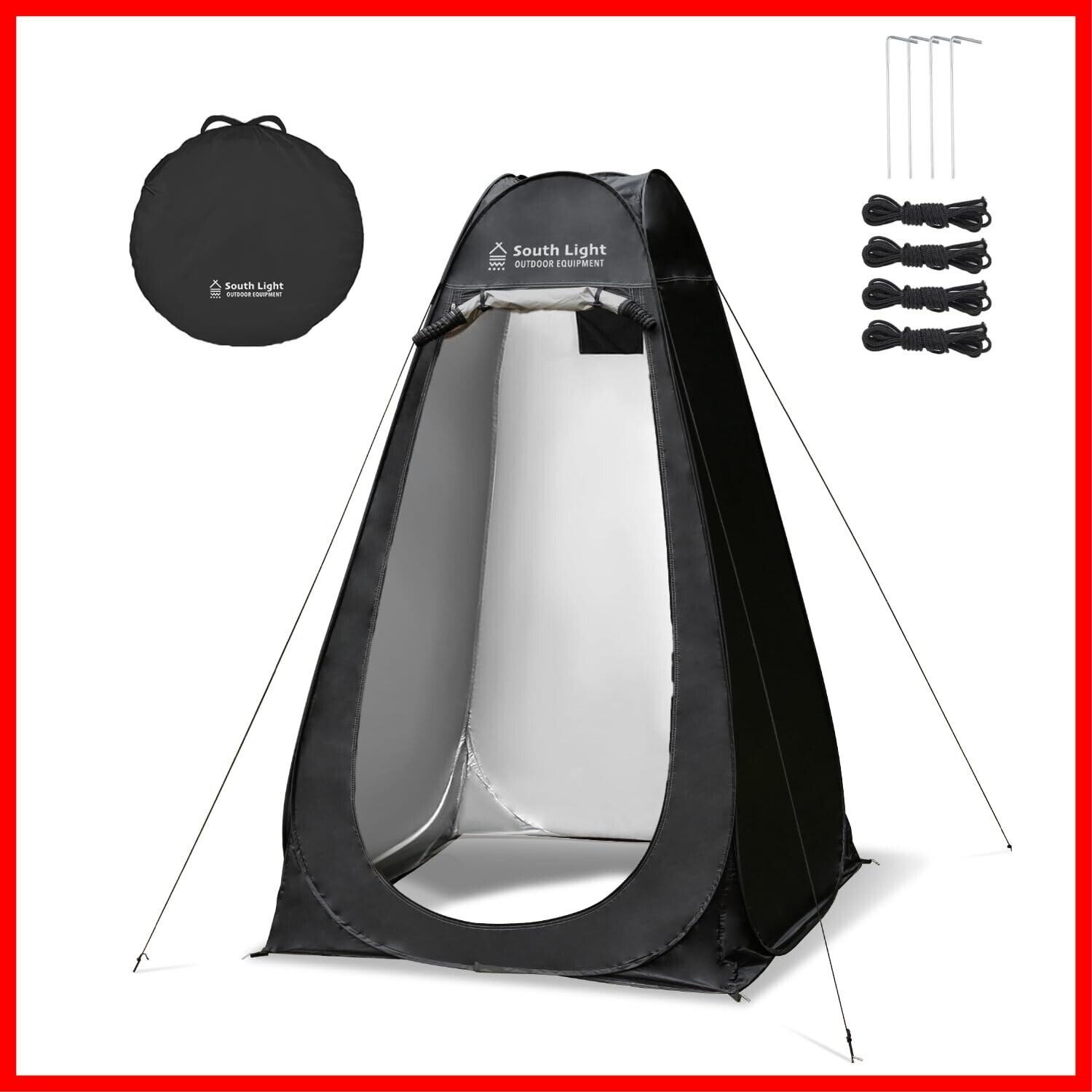 【幅広い用途&製品仕様】本製品は更衣室としてだけでなく、简易トイレやビーチテントのシャワー室としても幅広く活用できます。 型番:sl-lyzp01 色:ブラック 材質:ポリエステル(シート、ロープ)、スチール(フレーム、ペグ) サイズ:組立時 約W120×D120×H190㎝ 同梱品:テント本体×1、ペグ×4、ロープ×4、収納バッグ(ポリエステル製)×1