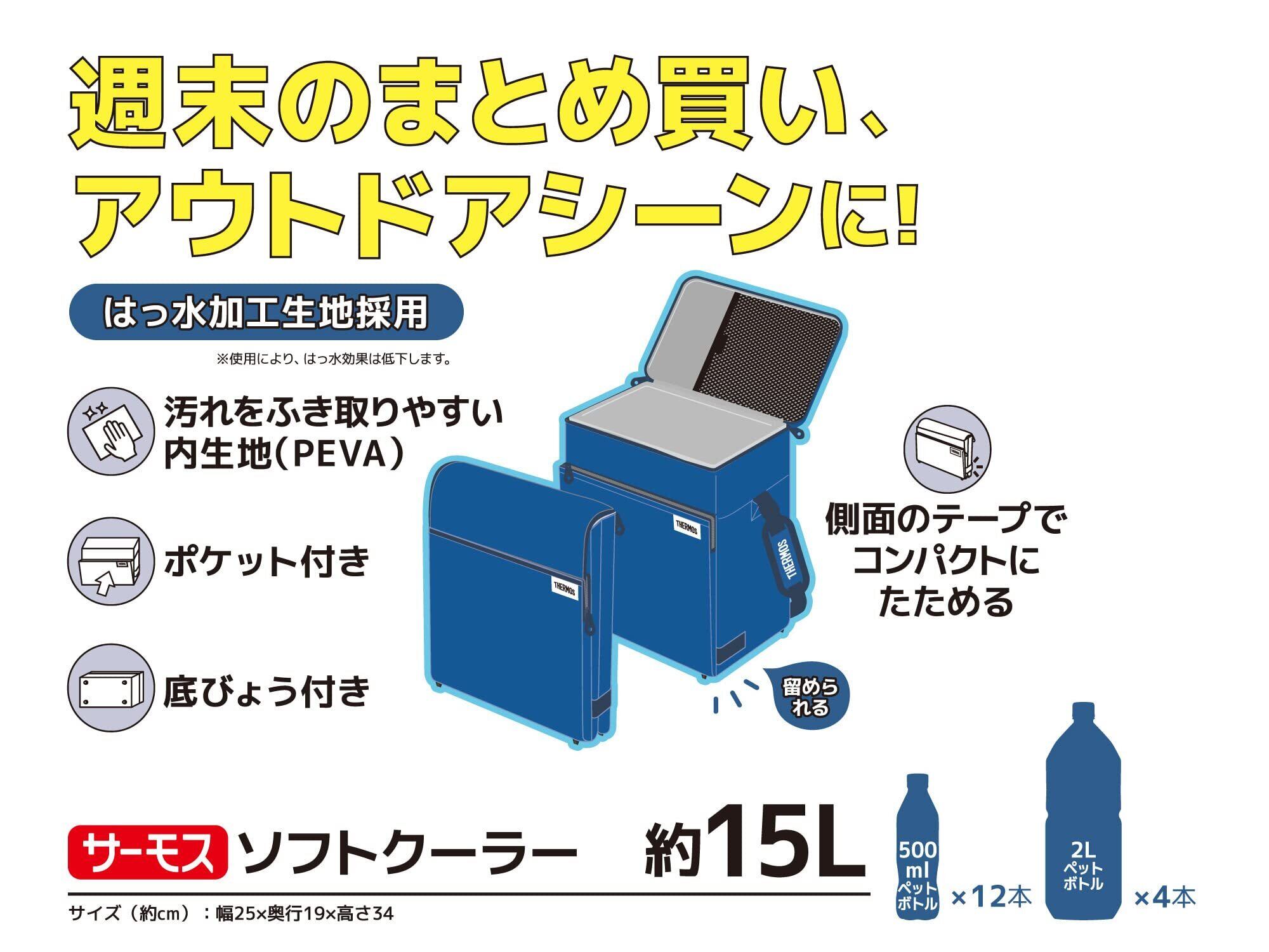 サーモス ソフトクーラー 15L ブルー RFD-015 BL 保冷バッグ 5層断熱構造 折りたためてコンパクト はっ水加工生地 ボックス型 大容量モデル
