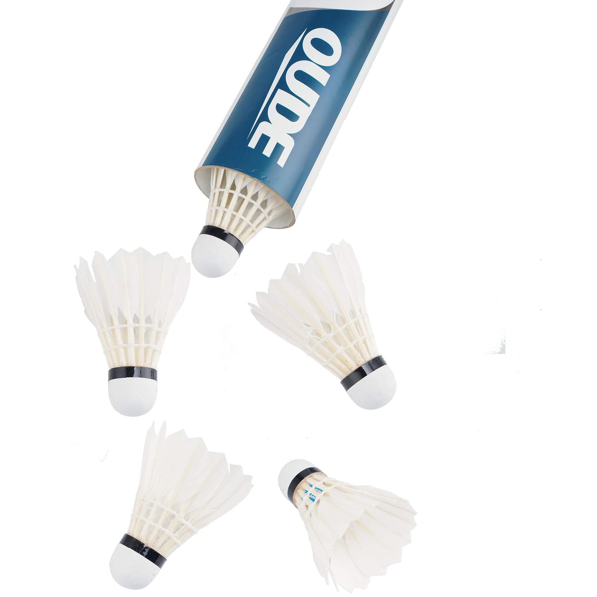 OUDEバドミントン、モデル200と12個のガチョウの羽羽根安定した丈夫なスポーツトレーニングのバドミントンボール、屋内屋外ゲーム用、ホワイト