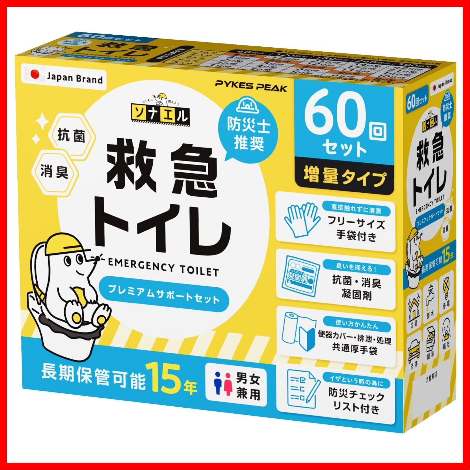 【新着商品】【防災士推奨】PYKES PEAK 救急トイレ 簡易トイレ 60回セット 凝固剤×60 共通袋×72 手袋×60 防災トイレ 15年保存 携帯トイレ 防災グッズ 防災 災害用 非常用 防災チェックリスト付き モグラ隊長 | カウカウ物販