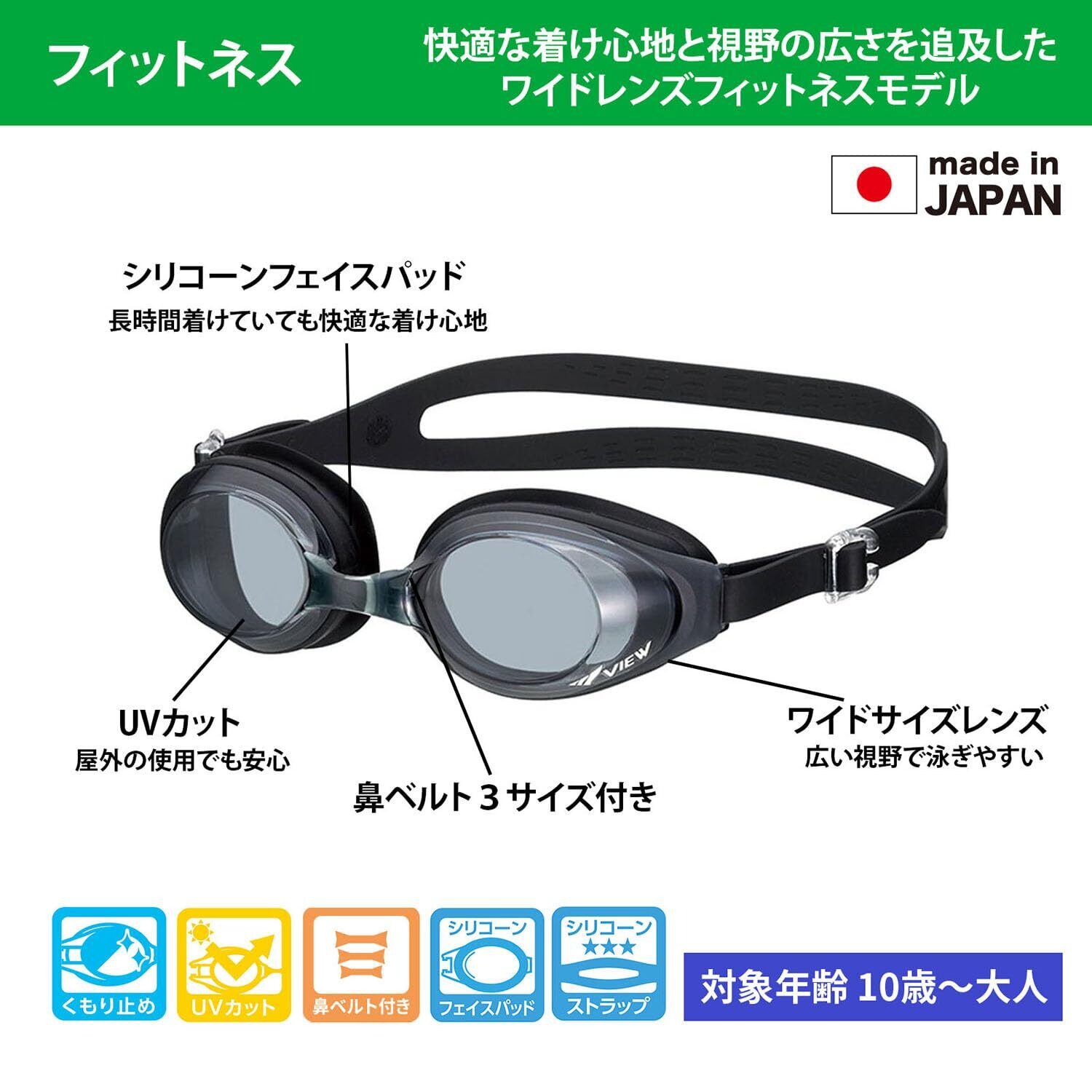 VIEW(ビュー) 日本製 スイミングゴーグル 大人用 視界が広く泳ぎやすいフィットネスモデル UVカット機能付で海水浴にも V610