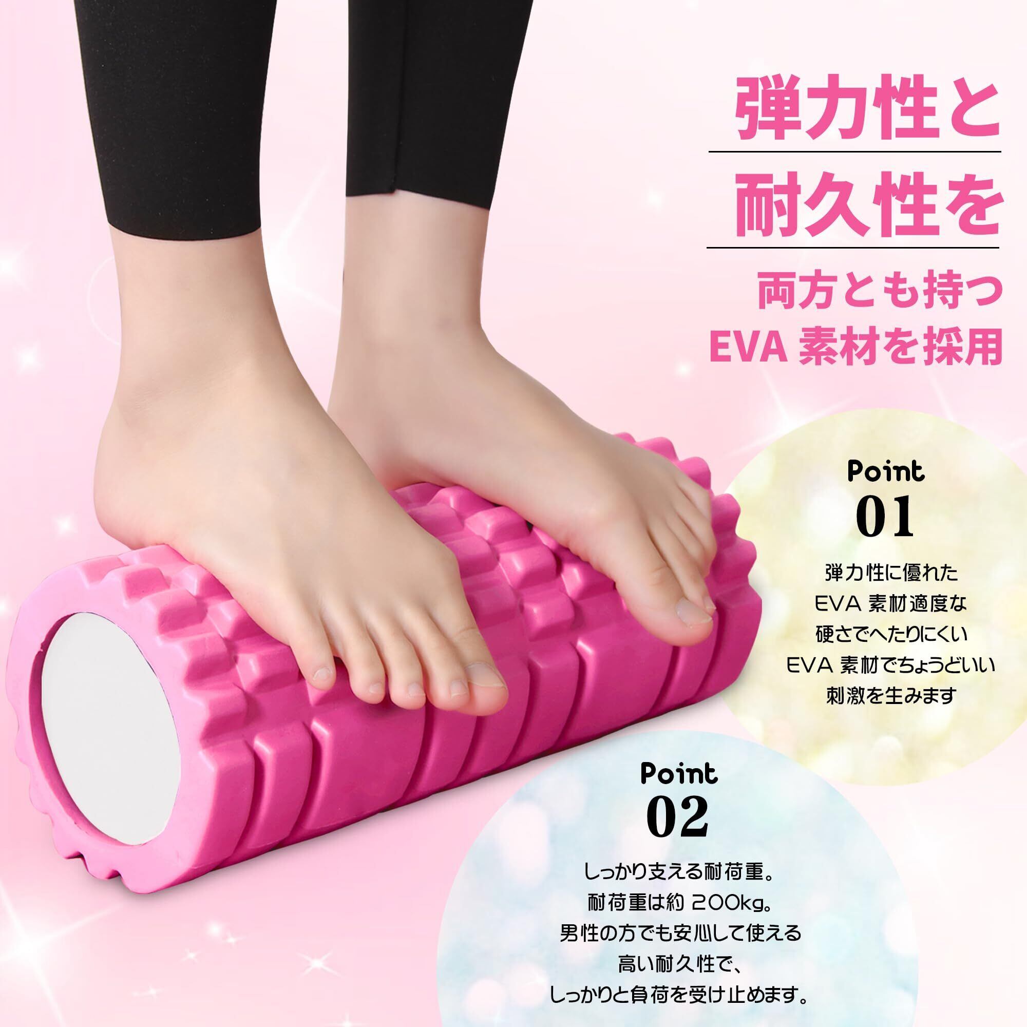 【耐久性アップ】新世代フォームローラーは表面には耐久性、防水性、弾力性に優れたEVA素材を採用し、突起がついており、指圧マッサージの様な感覚を与えるフォームローラーです。ストレッチポール中芯部の素材ははPVCではなく、軽量で超硬質のPP素材で、従来の製品よりも耐久性があり、変形しにくく、荷重が2倍になり、最大荷重が500kgです。